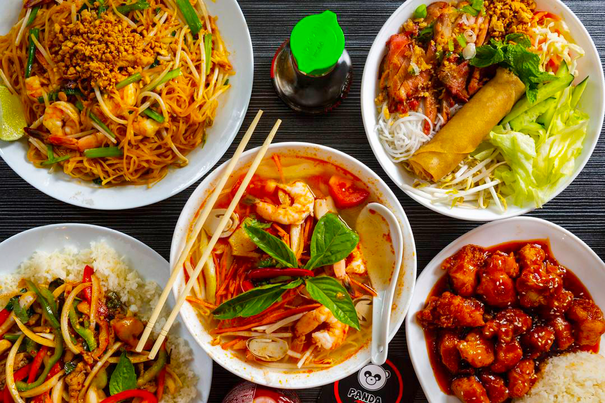 Thai food is known for its bold flavors, strong spices, and fresh herbs, while Chinese food generally uses milder spices and cooking techniques like stir-frying,